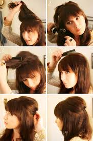 O rabo-de-cavalo também é fácil de fazer e pode modificar completamente o visual. Penteie todo o cabelo para trás, podendo deixar o rabo alto ou médio. Pegue uma fita e enrole nos cabelos, como deixando as duas pontos opostas e finalize fazendo um laço.